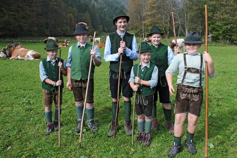 Customs also include wearing traditional costumes. Typical of the dirndl in the Salzkammergut is the color green in combination with pink, red and purple, while the men slip into dark lederhosen with predominantly green socks and loden jackets.